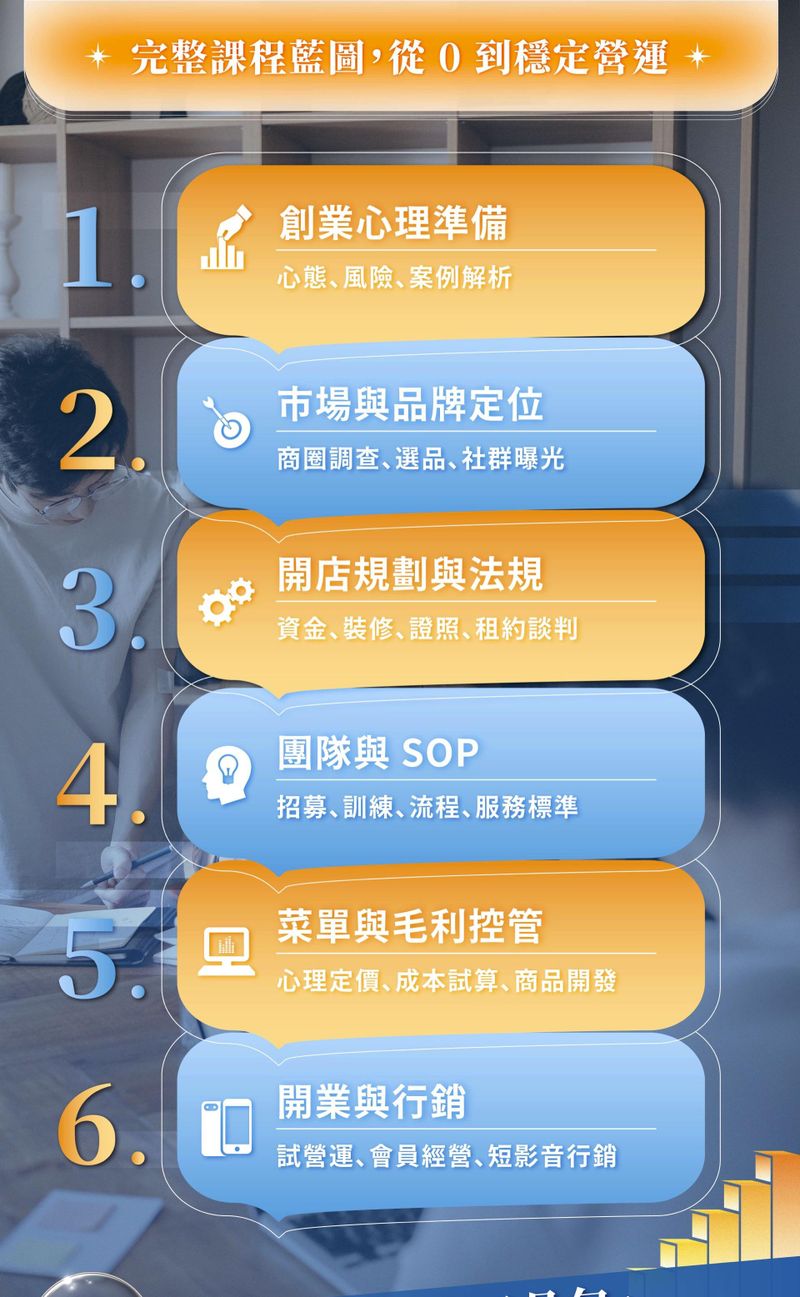 如今,他以陪跑教練的角色,陪伴學員少走冤枉路,開出屬於自己的第一家人氣餐飲店。